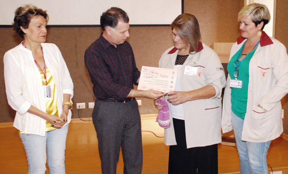 No ato, realizado no Grande Auditório do HT, o diretor geral da instituição, Geci Labres de Souza Junior, entregou o diploma à Pastora e responsável pela AOCP, Mirian de Castro Pessanha, agradecendo por todas as ações desenvolvidas pela equipe. "O diploma é uma forma de reconhecimento pela grande mobilização de vocês em prol da comunidade. O trabalho que realizam aqui contribui de forma significativa para o bem-estar dos pacientes e de seus familiares. O Hospital do Trabalhador agradece e está de portas abertas para a associação e seus voluntários".