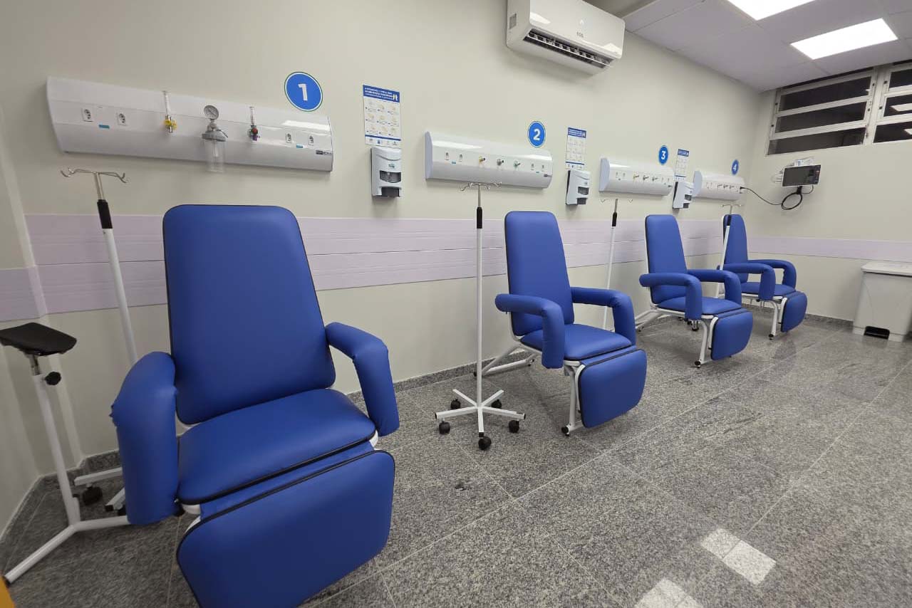 Um exemplo é a sala de medicação que contava com três poltronas de atendimento. Agora, o espaço contará com oito poltronas e sanitários, além da separação de atendimento entre homens e mulheres.