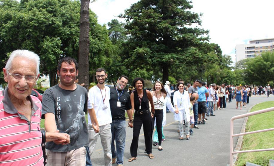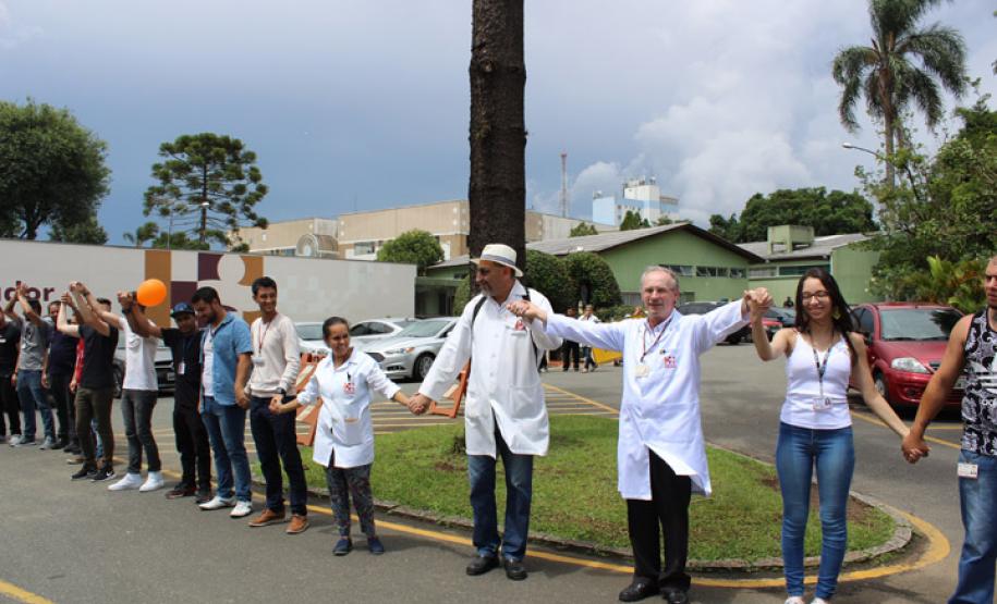Prova do comprometimento dos funcionários foi o abraço simbólico realizado nesta quarta-feira, no prédio do hospital. Mais de 700 pessoas, entre colaboradores, voluntários, pacientes, ex-pacientes e representantes da comunidade participaram da homenagem, que destaca a importância da estrutura para a população curitibana.