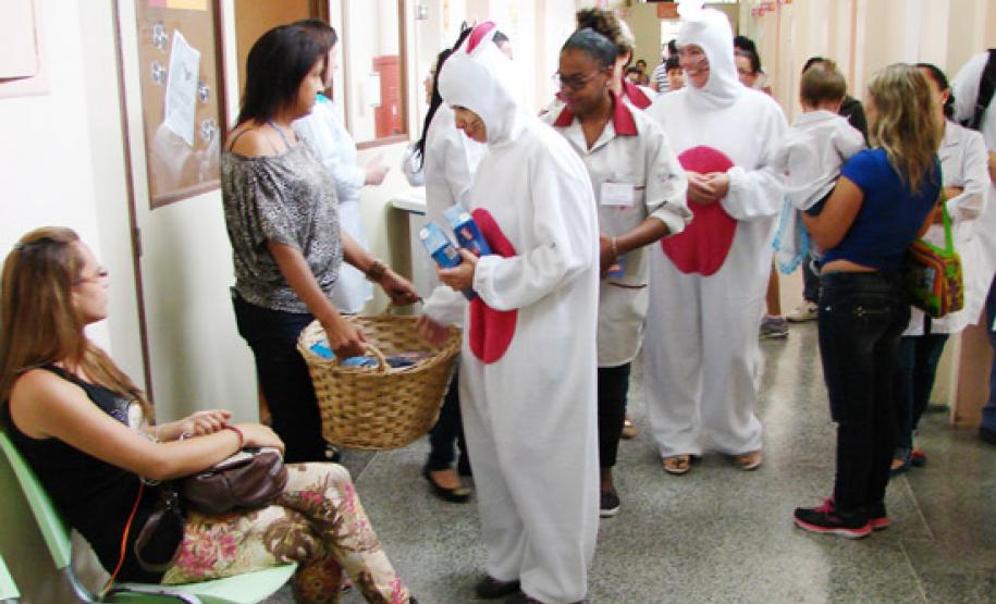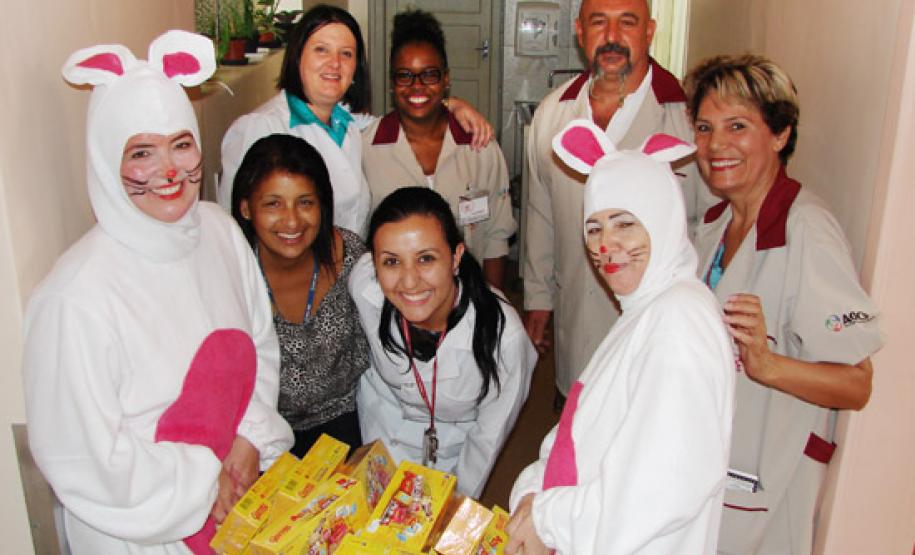 Na terça-feira (22), quem ganhou uma festa foram os pacientes internados na Pediatria. Além das guloseimas preparadas e fornecidas pela equipe de nutrição do hospital, as crianças receberam cestinhas especiais de páscoa e puderam se divertir com a presença dos “coelhinhos”.