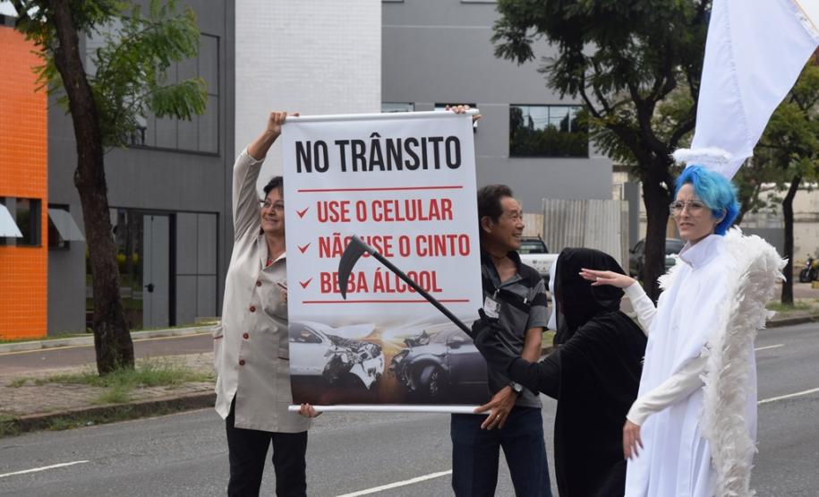O Hospital do Trabalhador (HT), que faz parte das unidades próprias do Estado, realizou uma blitz informativa sobre o perigo do uso de celular no trânsito. O evento aconteceu na Rua Isaac Guelmann, no bairro Portão, nesta segunda-feira (3).
