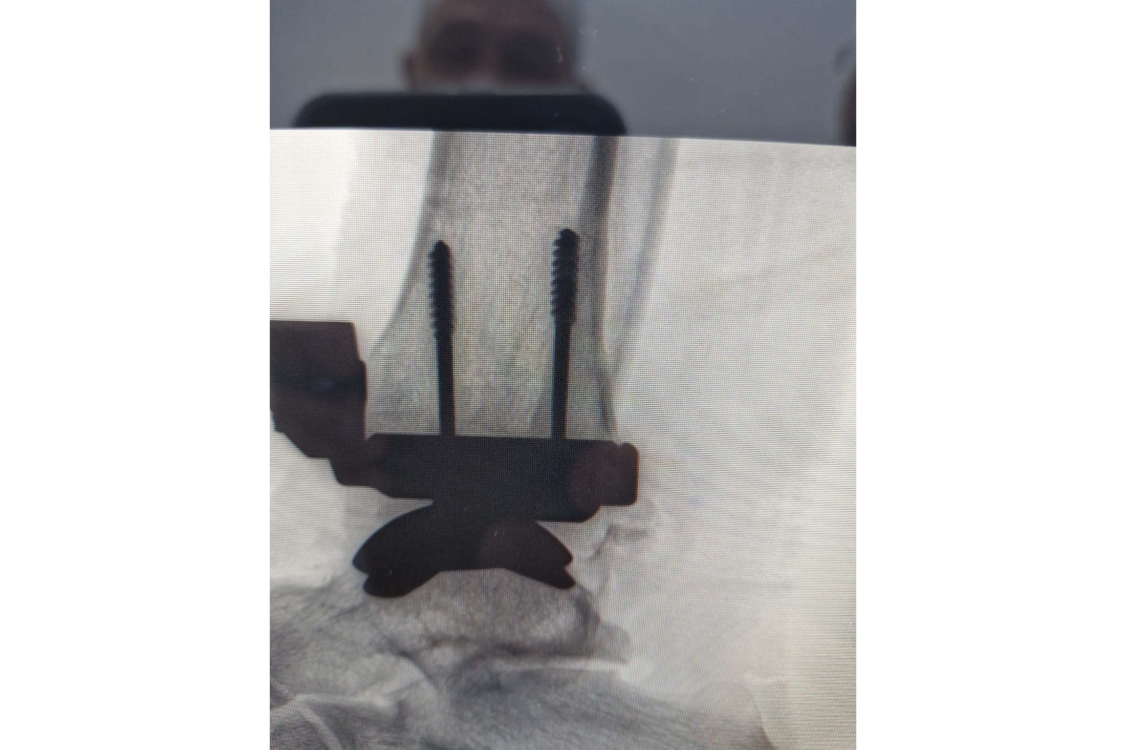 DOR CONSTANTE – O paciente operado pela equipe é Heitor de Oliveira Tedesco. Ele foi vítima de um acidente de trabalho em 2022 e teve fratura exposta no tornozelo, o que obrigou uma cirurgia de emergência, com a colocação de seis pinos e uma placa.