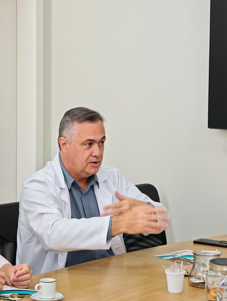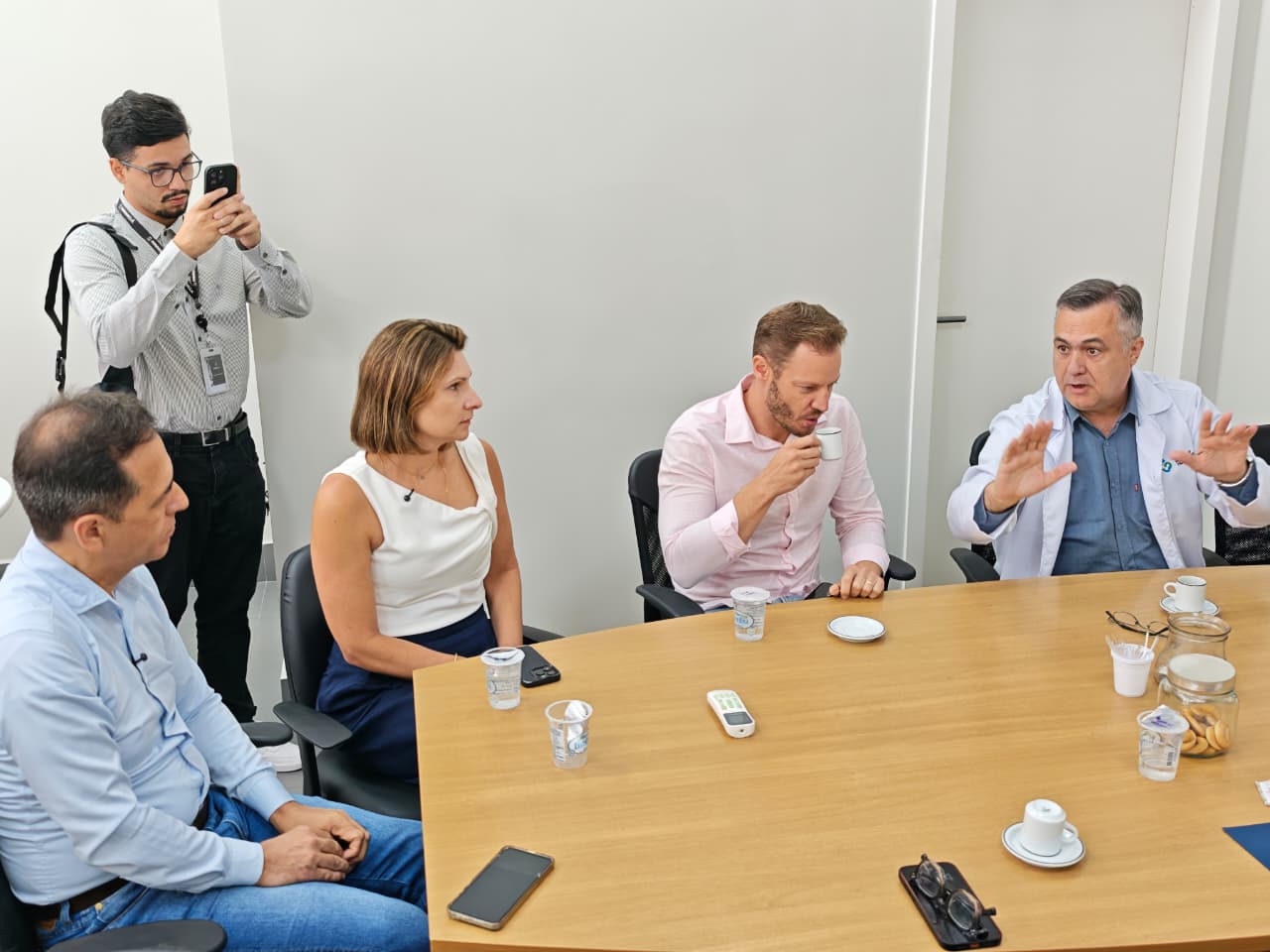 PARTICIPANTES - Também participaram da reunião o diretor-superintendente do Complexo Hospitalar do Trabalhador (CHT), Guilherme Graziani, a vice-prefeita de Paranaguá, Fabiana Parro, a superintendente de projetos na captação de recursos de Paranaguá, Gabriela Setoyama e o oftalmologista e diretor da Clínica Médico de Olhos, Dr. Hamilton Moreira.