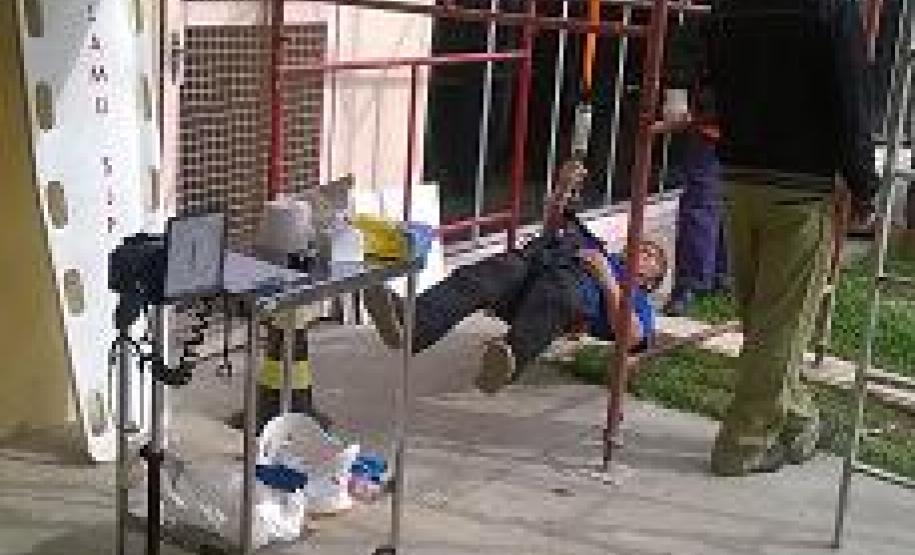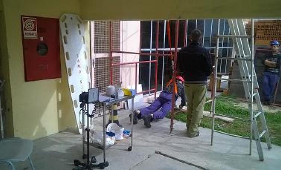 O curso teve duração de 8 horas e, além da teoria, foi montado uma estrutura em andaimes nos fundos do prédio do SPP (Serviço de Prontuário do Paciente), para a orientação e prática das atividades.